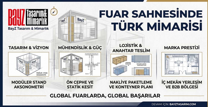 Türkiye’deki fuar organizasyonları, özellikle Orta Doğu, Balkanlar ve Avrupa’dan gelen profesyonel alıcıların buluşma noktasıdır. Bu uluslararası ziyaretçi profilini etkilemek için kullanılan stand tasarımı, markanın "güç ve güven" mesajını doğrudan iletmelidir. Yerel fuarlarda genellikle tercih edilen standart çözümlerin aksine, BayZ Tasarım, markalara butik mimari dokunuşlar sunarak fark yaratıyor.